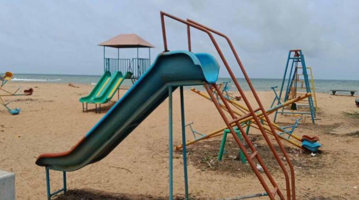 දේශපාලකයින්ට සල්ලි ගහ ගන්න වැඩක් කරපු එක විතරයි.” කෙසේ හෝදරුවන්ට යැයි කියා ඉදිකර ඇති බටහිර ඉරණවිල ළමා උද්යානය දවසින් මුහුදට බිළි වෙමින් පවතින්නේය.රුපියල් ලක්ෂ 10 කට ආසන්න රජයේ මුදලක් සමග මෙන්ම දරුවන්ගේ සතුටද සමගය.